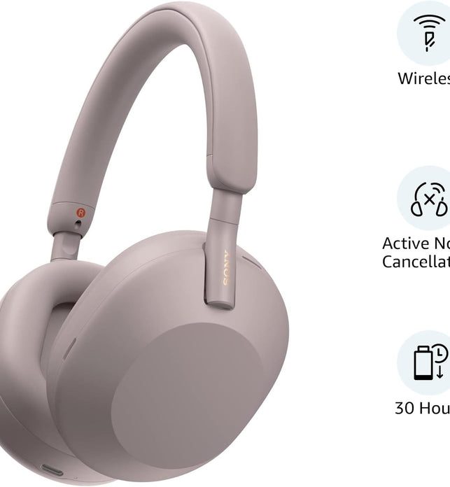 Introducing the Sony WH-1000XM5 Noise Cancelling Wireless Headphones: Our industry-leading noise cancellation just took its biggest step up! With four microphones on each earcup, ambient sound is captured even more accurately, and the new Integrated Processor V1 unlocks the full potential of our HD Noise Cancelling Processor QN1 to deliver unprecedented noise cancelling quality. Enjoy Sony-unique technologies, including a premium lead-free solder containing gold for excellent conductivity, a Fine Sound Resistor for even power distribution, and optimised circuitry for an improved signal-to-noise ratio to ensure clear, consistent sound. High-Resolution Audio and High-Resolution Audio Wireless are supported, thanks to LDAC, transmitting approximately three times more data than conventional Bluetooth audio. Our Precise Voice Pickup Technology uses four beamforming microphones and an AI-based noise reduction algorithm to isolate your voice precisely, and our newly developed wind noise reduction structure minimises wind noise during phone calls. Adaptive Sound Control automatically adjusts the ambient sound settings to suit where you are and what you're doing, Speak-to-Chat lets you have a conversation without taking off your headphones, and the music is automatically stopped when you aren't wearing them. For total convenience, these Bluetooth headphones can be paired with two devices at the same time. Fast Pair and Swift Pair are both featured. With up to a huge 30 hours of battery life, you’ll have enough power, even for long trips, and a collapsible case is included for easy storage.