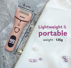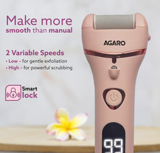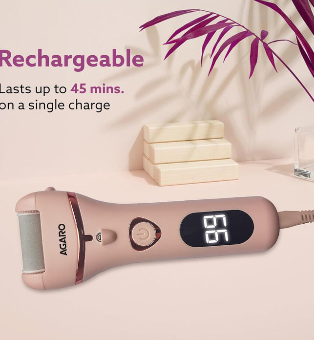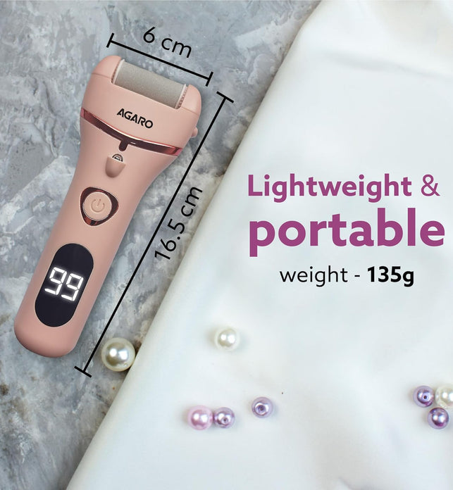 AGARO CR1727 Callus Remover comes with three interchangeable heads. It is IPX6 water proof and Rechargeable It is used for removing callus and dead skin