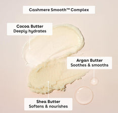 - CASHMERE SMOOTH COMPLEX: Our formula contains a blend of the most naturally moisturizing & protective butters for velvety soft, cashmere smooth skin: shea butter softens & nourishes, cocoa butter deeply hydrates while argan butter soothes & makes skin smooth