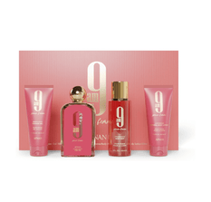 The AFNAN Gift Set 9 AM Femme is a luxurious collection designed for women who appreciate elegance and sophistication. It includes a 100 ML Eau De Parfum, 100 ML Shower Gel, 100 ML Body Lotion, and a 150 ML Body Mist, creating a complete self-care experience. The fragrance opens with zesty Mandarin, Bergamot, and Grapefruit, transitions into a fruity heart of Black Currant and Raspberry, and settles into a comforting base of Musk, Orange, and Amber, making it perfect for any occasion.