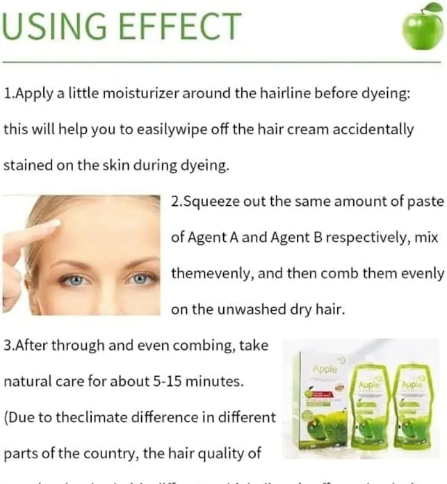 • Ammonia Free Apple Fruit Extract Hair Dye Cream 96H To Long Lasting Color for Hair and Beard(black)