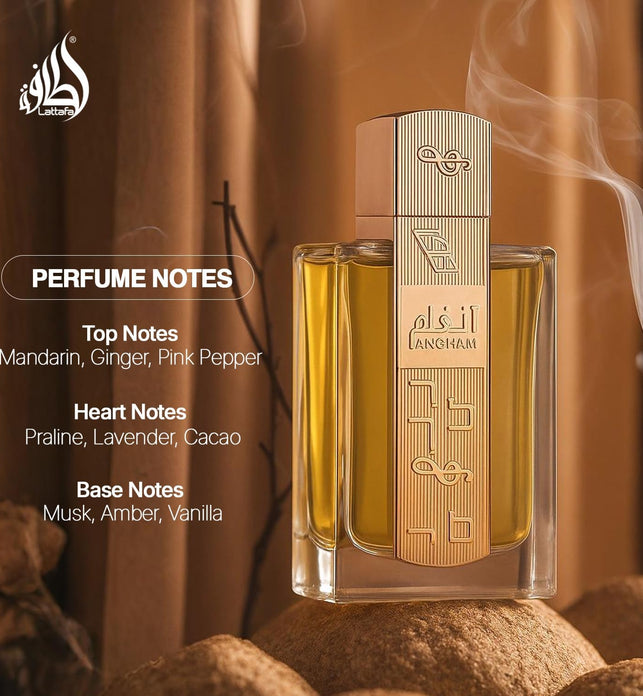 Introducing Angham, our latest fragrance, inspired by the enchanting rhythm of music. This olfactory symphony blends the vibrant notes of Pink Pepper, the elegance of Jasmine, the zest of Ginger, and the warmth of Vanilla. Let each note come together in a harmonious dance, captivating your senses and evoking the magic of a beautifully composed melody. With Angham, experience the perfect harmony of scent and sound, and let the music of fragrance enchant you.