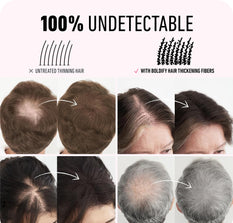 • INSTANTLY FILL IN THINNING HAIR WITH UNDETECTABLE FINISH: Formulated with skin safe ingredients and mineral colorants, Boldify Hair Thickening Fibers bond seamlessly to existing hair for a real hair effect that's invisible to the eye. Perfect for enhancing the crown and partline, our fibers are designed with follicle-mimicking molecules for the most natural blend. Use Boldify Hairline Powder for areas with less hair.