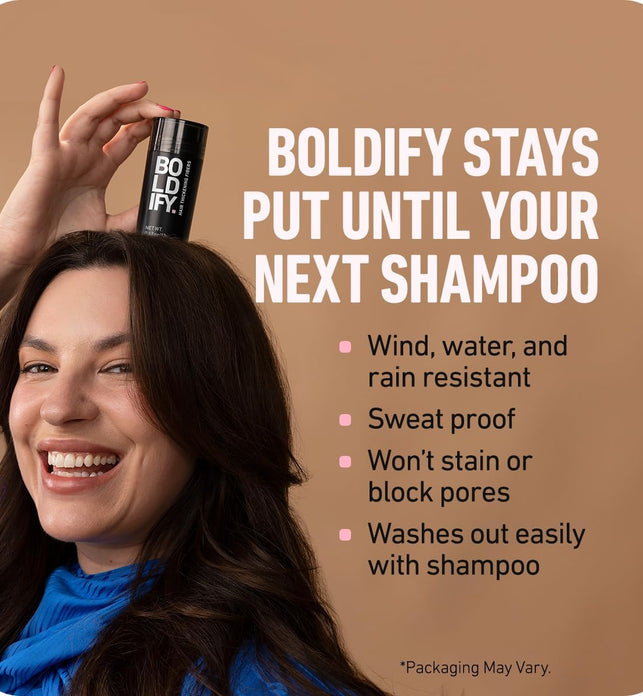 • INSTANTLY FILL IN THINNING HAIR WITH UNDETECTABLE FINISH: Made from just 3 natural ingredients, Boldify Hair Thickening Fibers bond seamlessly to existing hair for a real hair effect that's invisible to the eye. Perfect for enhancing the crown and partline, our fibers are designed with follicle-mimicking molecules for the most natural blend. Use Boldify Hairline Powder for areas with less hair.