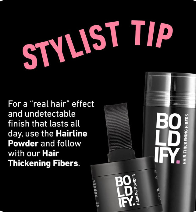 Looking for a little extra coverage up top? Combine with BOLDIFY Hair Thickening Fibers for comprehensive coverage and a “real-hair” finish!
