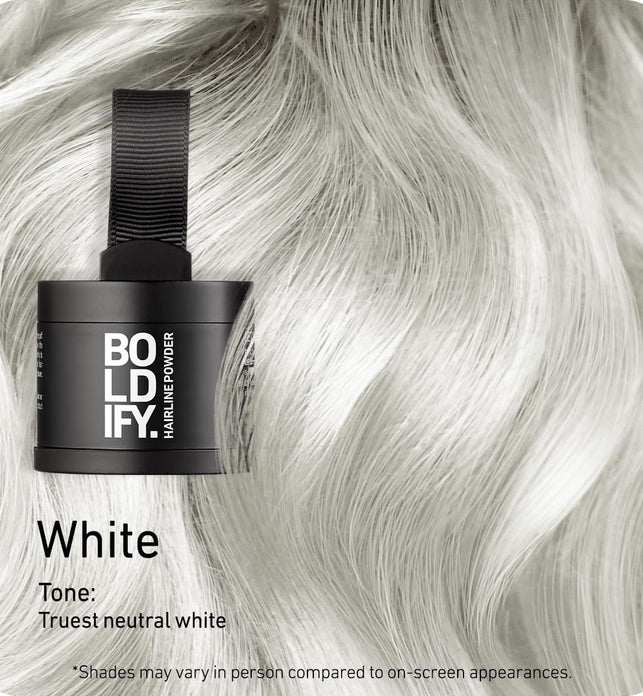 • BOLDIFY Hairline Powder - Root Touch Up Hair Color for Gray Coverage - Bald Spot Concealing Hair Powder for Women & Men - 48-Hour Stain-Proof White