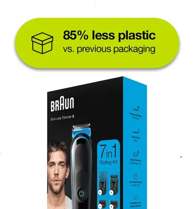 - Rechargeable all-in-one wet & dry trimmer with unprecedented cutting performance vs. previous generations of Braun beard trimmers