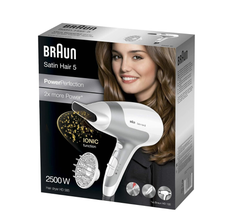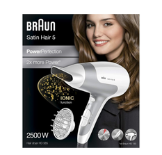 The most powerful dryer in the PowerPerfection range, the Satin Hair 5 dryer combines optimum drying temperatures with 2500 watts of power. Easy to use and ergonomic, it’s the ideal tool to dry your hair faster and more thoroughly. It’s uniquely lightweight and compact, and perfect to use at home or away. Country of Manufacture: Made in China.