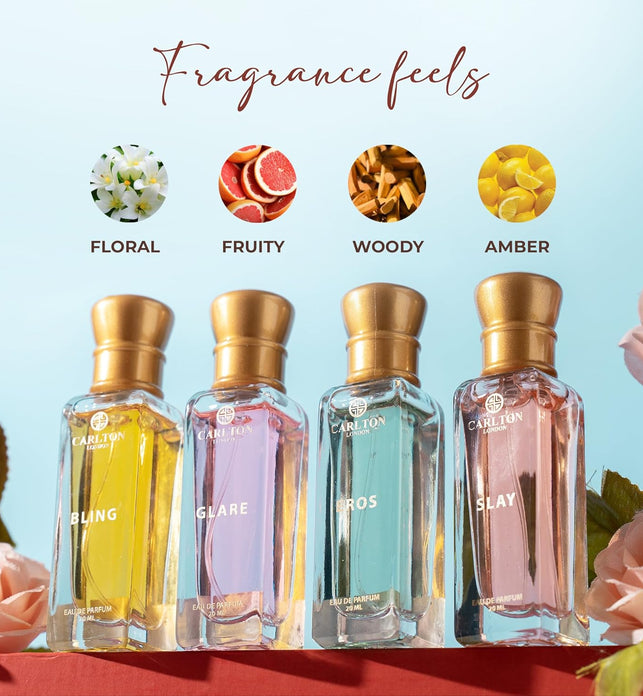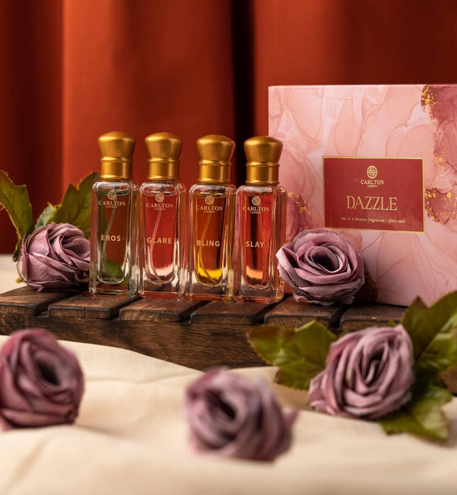 Step into the world of sophisticated fragrance with the Carlton London Dazzle Women Perfume Gift Set - a breathtaking ensemble of four exquisite 20 ml Eau de Parfum scents, thoughtfully designed to complement any occasion and mood. This elegant collection presents the perfect harmony between floral and fruity notes, offering a refined fragrance journey for women who seek both freshness and finesse. Each scent is housed in a sleek, lacquer-finish bottle that elevates your dressing table or travel companion, while the compact size ensures effortless portability. Long-lasting and memorable, these perfumes are crafted to keep you confidently fragrant from your morning routine to evening engagements. Packaged in a chic presentation box, this set becomes a ready-to-gift treasure - ideal for birthdays, anniversaries, festive gifting, or even as a self-indulgent treat. For optimal use, gently spray onto clean, dry pulse points such as the wrists, neck, and behind the ears - avoid rubbing the fragrance into your skin to maintain its layered complexity. Keep the set stored in a cool, dry place away from sunlight to preserve the vibrancy of each scent. Whether you’re seeking to surprise someone special or simply expand your own fragrance collection, the Carlton London Dazzle Women Perfume Gift Set delivers elegance, variety, and luxurious longevity in every spray.