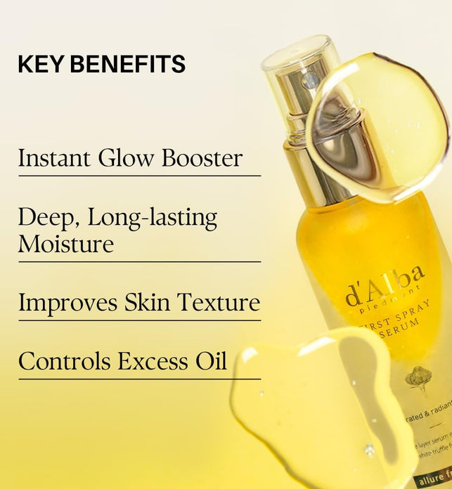 • d'Alba Piedmont Italian White Truffle First Spray Serum, Vegan Skin Care, Hydrating Face Moisturizer, Glow Serum for Radiant Skin, Non Comedogenic, All In One Mist 50ML