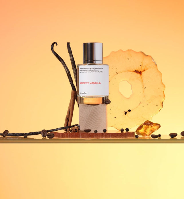 • Ambery-Vanilla, Pure Fragrance Top notes: experience the first blend of mandarin, pear, pink pepper and licorice, the first captivating notes that awaken your senses. Middle notes: discover the heart of the perfume of jasmine and orange blossom. Base notes: enjoy cedarwood, patchouli, vanilla and coffee