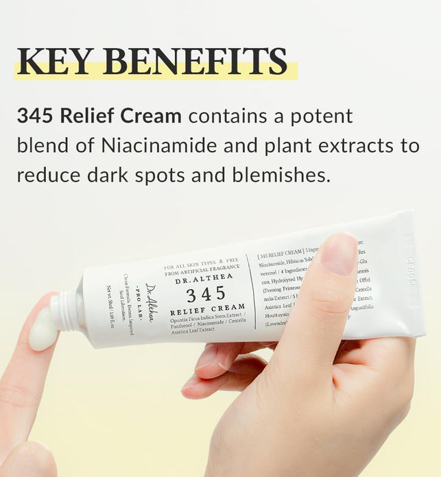 - DAILY RELIEF & SOOTHING CARE : 345 Relief Cream offers a moisturizing texture with a silky finish without any greasy feeling. Its refreshing formula is ideal for any time as part of your post-acne skincare routine.