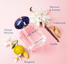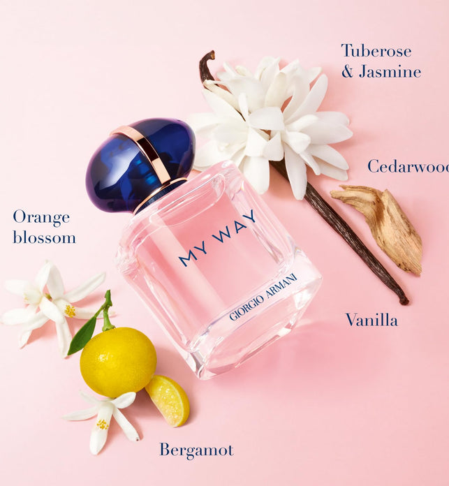 My Way is a fragrance that’s inspired by the woman who finds a path to reveal her truest self. The scent is a celebration of nature and rightly respects the natural world. Master perfumer, Carlos Benaïm and senior perfumer Bruno Jovanovic partner to create a stunning floral fragrance that opens with citrusy bergamot and sweet, white floral orange blossom for a ultra-feminine tone. The orange blossom note is extracted in Egypt using an innovative, exclusive and entirely natural process. The white floral theme continues as opulent jasmine blends with tuberose, a sweet, creamy flower that’s harvested in India and extracted using molecular distillation. Finally, the base reveals a cosy, sensual tone as gourmand vanilla - a delicious note that Giorgio Armani source from Madagascar using a program that benefits local communities - pairs with comforting cedarwood and seductive white musks.