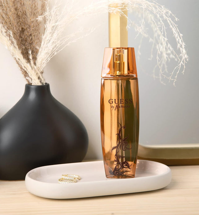 Guess By Marciano for Women is created a unique fusion of fresh fruits and exotic floral notes. Graceful feminine patterns adorn the incredibly charming bottle. Top notes: star fruit, curacao oranges, grapefruit, cardamom. Heart notes peony, pink honeysuckle, crystal jasmine blossom. Base notes: raw wood, vanilla, musk, dulce de leche.