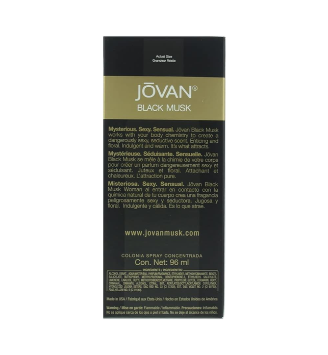 Mysterious, sexy and sensual fragrance, Jovan Black Musk Women works with your body chemistry to create a dangerously seductive scent. Floral, indulgent and warm. A very pleasant smell. Captivate and mesmerize without ever saying a word when you wear Jovan Black Musk, a timeless creation from the house of Jovan. First launched in 1972, this delightfully rich and robust fragrance for women has helped generations of women find comfort in the mysteries of the night. Designed for evening wear, this sweet and heady scent features a delicate floral blend that leaves those in your wake thinking about you long after you've left the room.