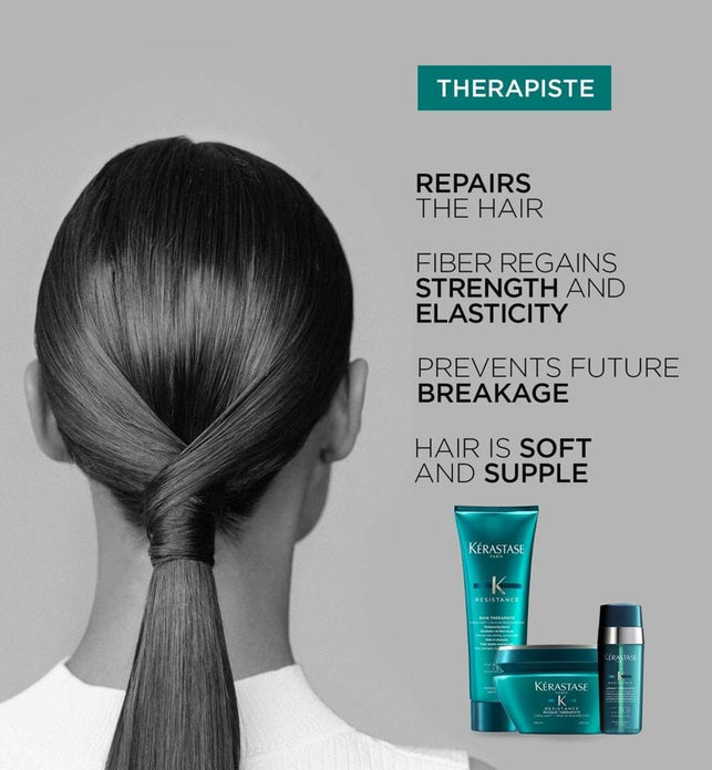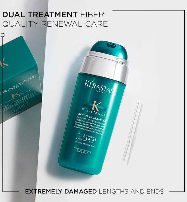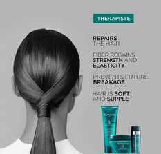 Sérum Thérapiste by Kérastase is a double-action hair serum for very-damaged and over-processed hair. Its innovative formula associates a repairing cream and a binding serum for a thermo-protection reaching up to 230°C. Repairing the hair fiber instantly, it reinforces and smoothes the surface of the hair fiber. It also facilitates and makes blow-dry two times faster, sealing the ends of the hair to prevent split ends.