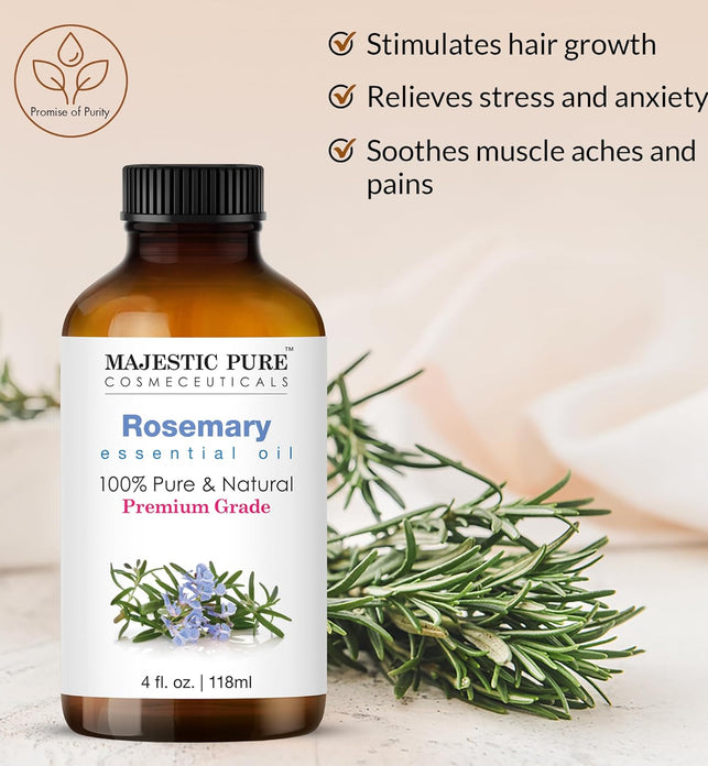 • Majestic Pure Rosemary Essential Oil - Pure and Natural Aromatherapy Oil - Therapeutic Grade, 4 fl. oz.