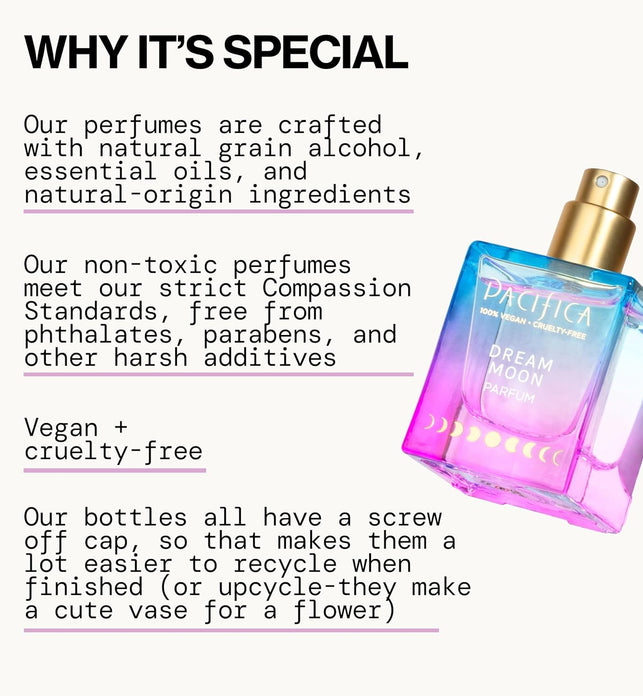 Pacifica Beauty is more than just a brand; it's a movement towards compassionate beauty. With a focus on transparency and quality, we conduct frequent consumer and clinical studies to ensure our products meet the highest standards. The Dream Moon Spray Perfume is a testament to our dedication to creating effective formulas that not only make you feel good but also align with your values.