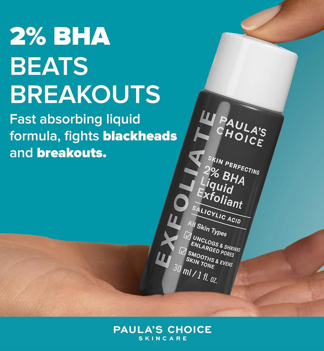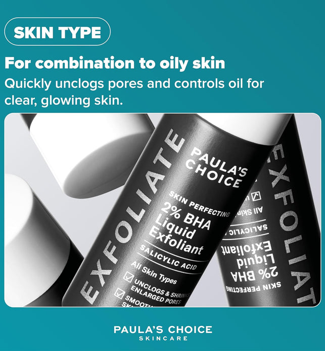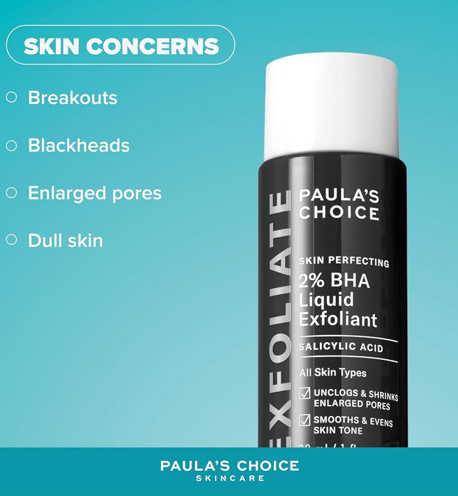 • Paula's Choice SKIN PERFECTING 2% BHA Liquid Exfoliant Face Exfoliating Peel Fights Blackheads & Enlarged Pores with Salicylic Acid Combination & Oily Skin 30 ML