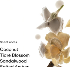 • SCENT NOTES: Top: Palm Leaf, Caramel Gelato, Coconut. Heart: Frangipani, Tiare Blossom, Jasmine Absolute Sambac. Base: Liquid Sandalwood, Salted Amber.