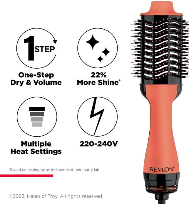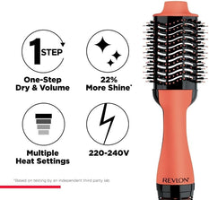 • Revlon RVDR5222PARB One Step Volumiser Hair Dryer and Styler, 2 Heat Settings Plus Cool Setting - Less Frizz, More Shine and Reduced Heat Damage for Salon Style Round Brush for Blowout - Apricot