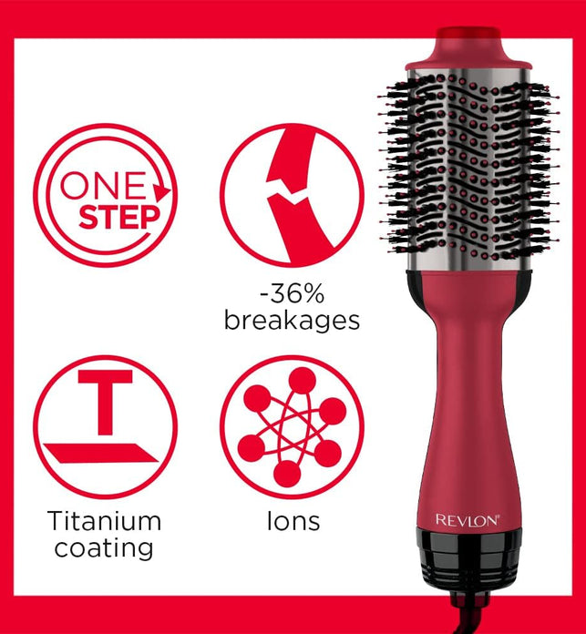 • Revlon RVDR5279ARB One Step Hair Dryer & Volumizer, 2 heat setting plus cool setting Titanium Coating