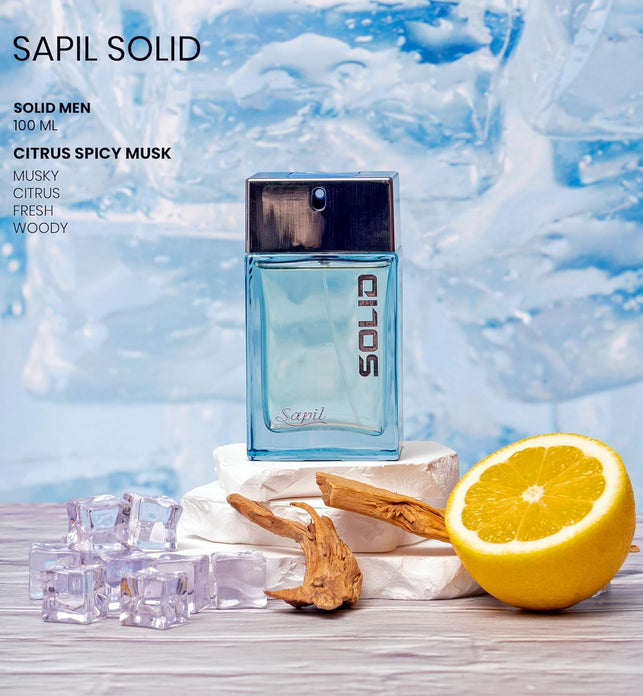 Sapil Solid is a fragrance built for men who live on the edge and own every moment. It’s adventurous, explosive, and irresistibly cool, designed to capture raw masculine energy with an elegant twist. The scent opens with a burst of fresh citrus that instantly energizes the senses, creating a bright and confident introduction. At its heart, an addictive wave of spice takes over, delivering warmth, intensity, and just the right amount of attitude. The base brings everything together with rich musk and deep woody notes, leaving a dark, magnetic trail that feels powerful and sophisticated. Solid embodies the perfect balance between strength and style. It’s bold enough to make a statement yet smooth enough for everyday wear. Whether it’s an action-packed day or a night that never slows down, this fragrance keeps up with every move.
