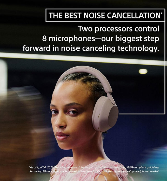 From airplane noise to people’s voices, our WH-1000XM5 wireless headphones with multiple microphone noise cancelling keep out more high and mid frequency sounds than ever. And with Auto NC Optimizer, noise cancelling is automatically optimised based on your wearing conditions and environment.